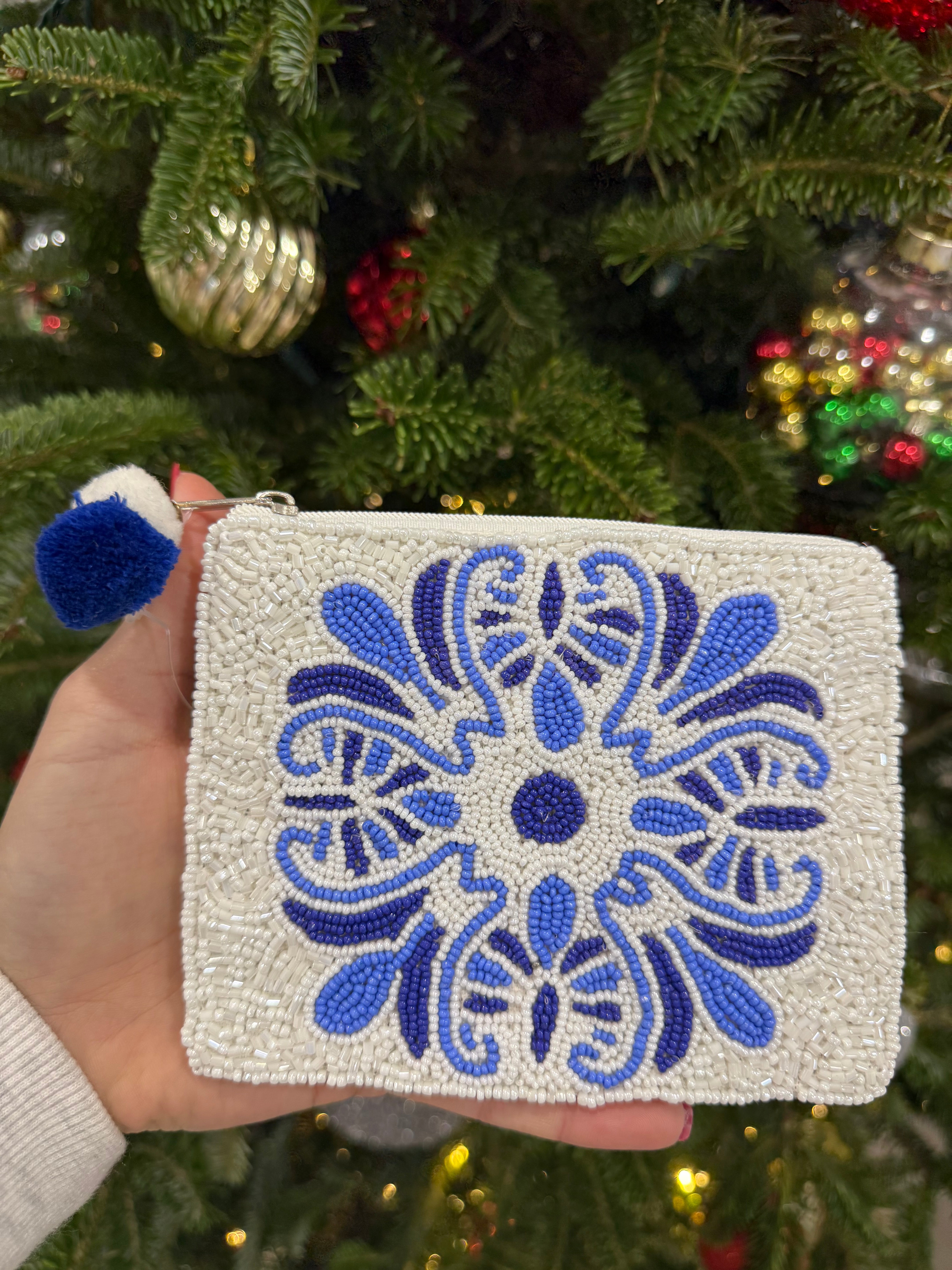BLUE PRINTED STRAPLESS MAXI DRESS
