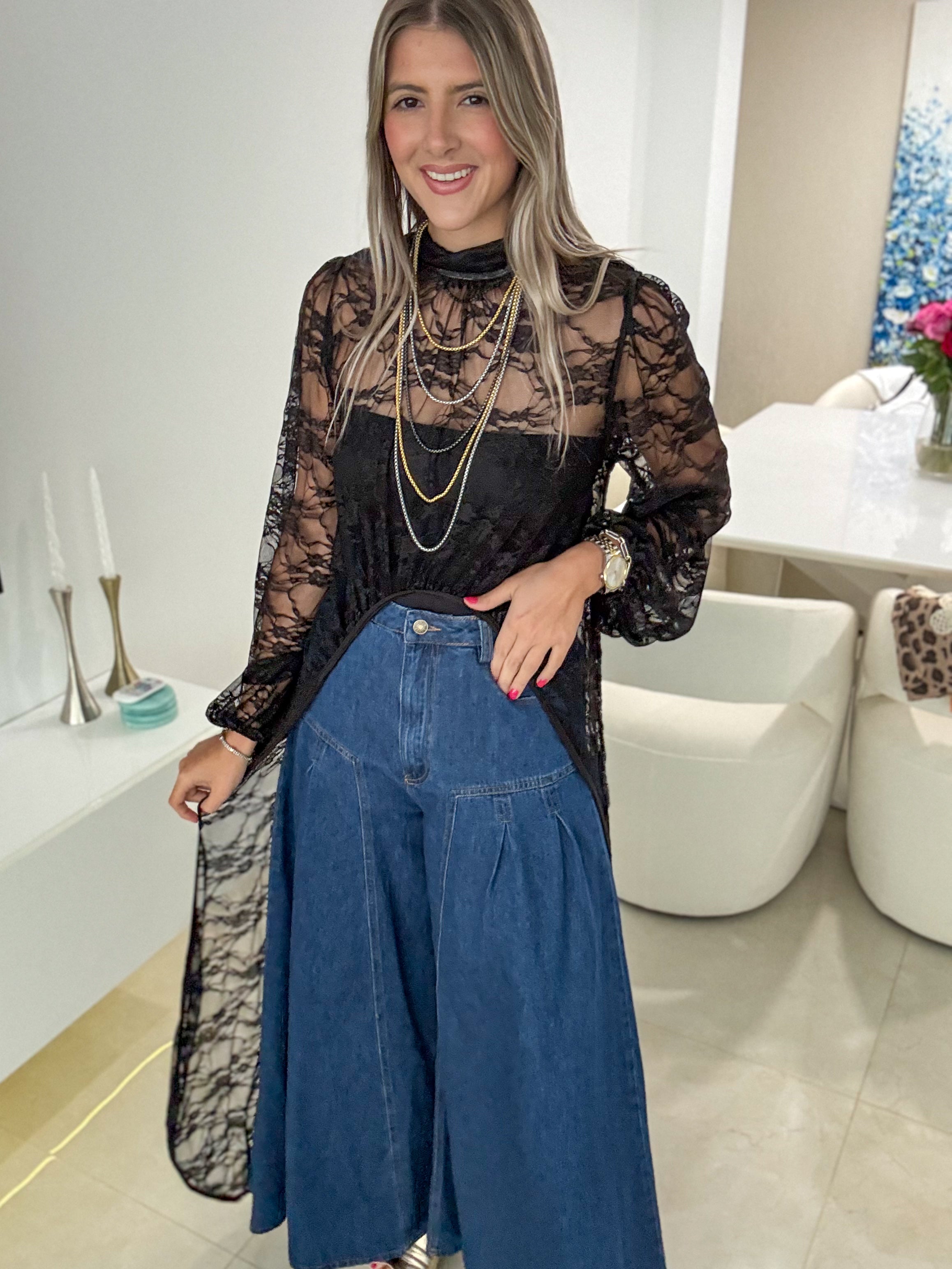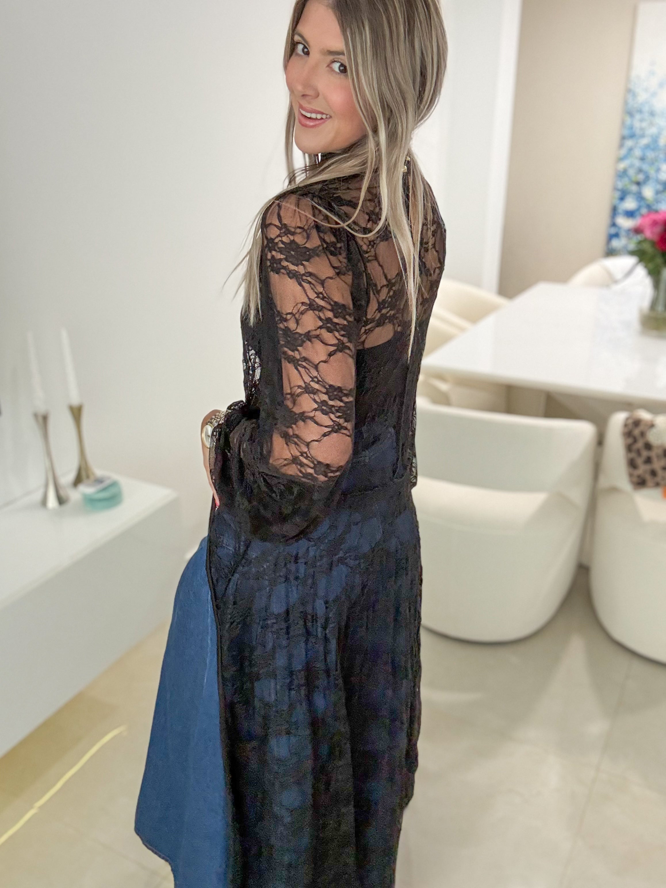 BLACK STRETCHY LACE HIGH LOW TOP