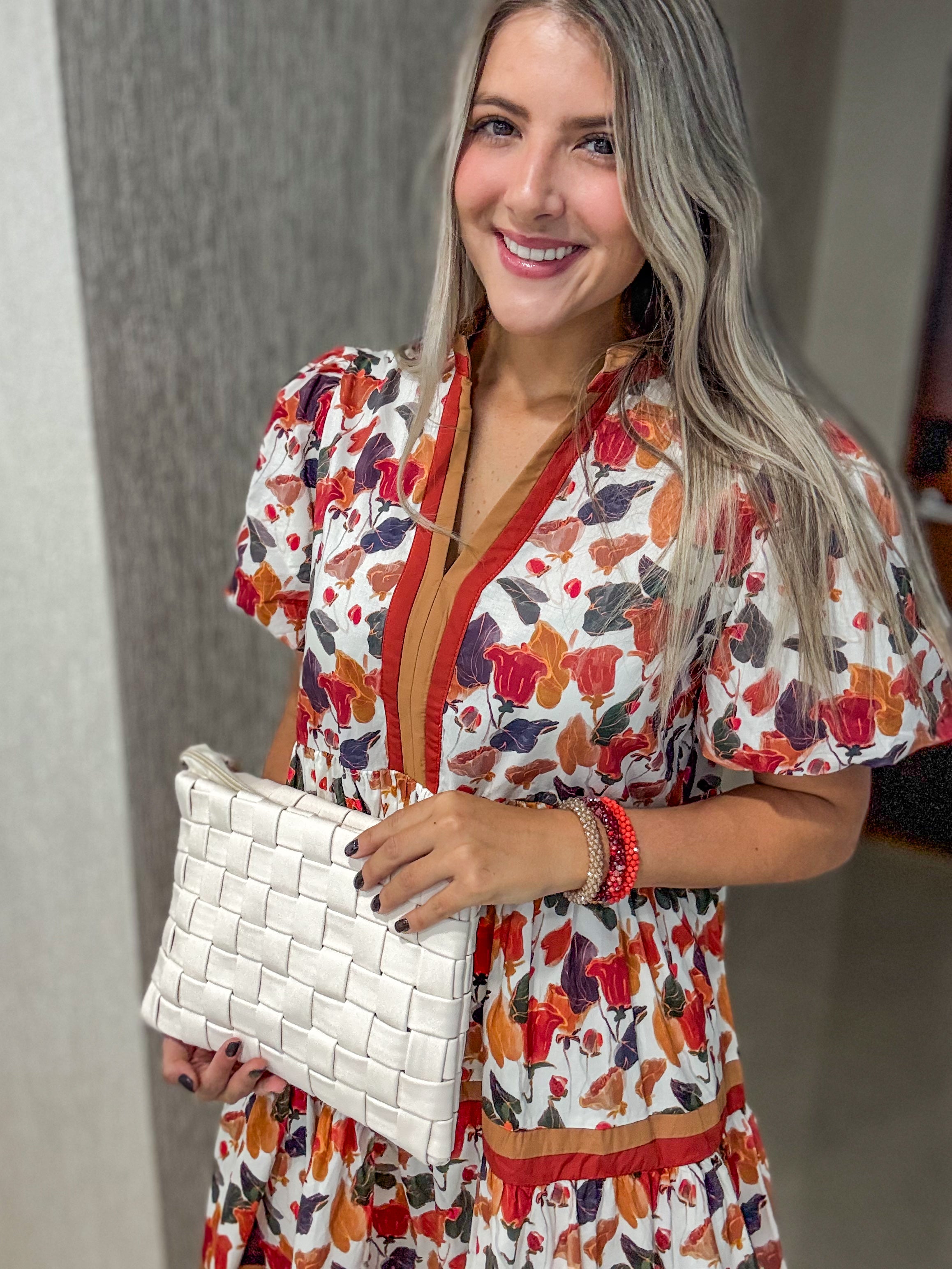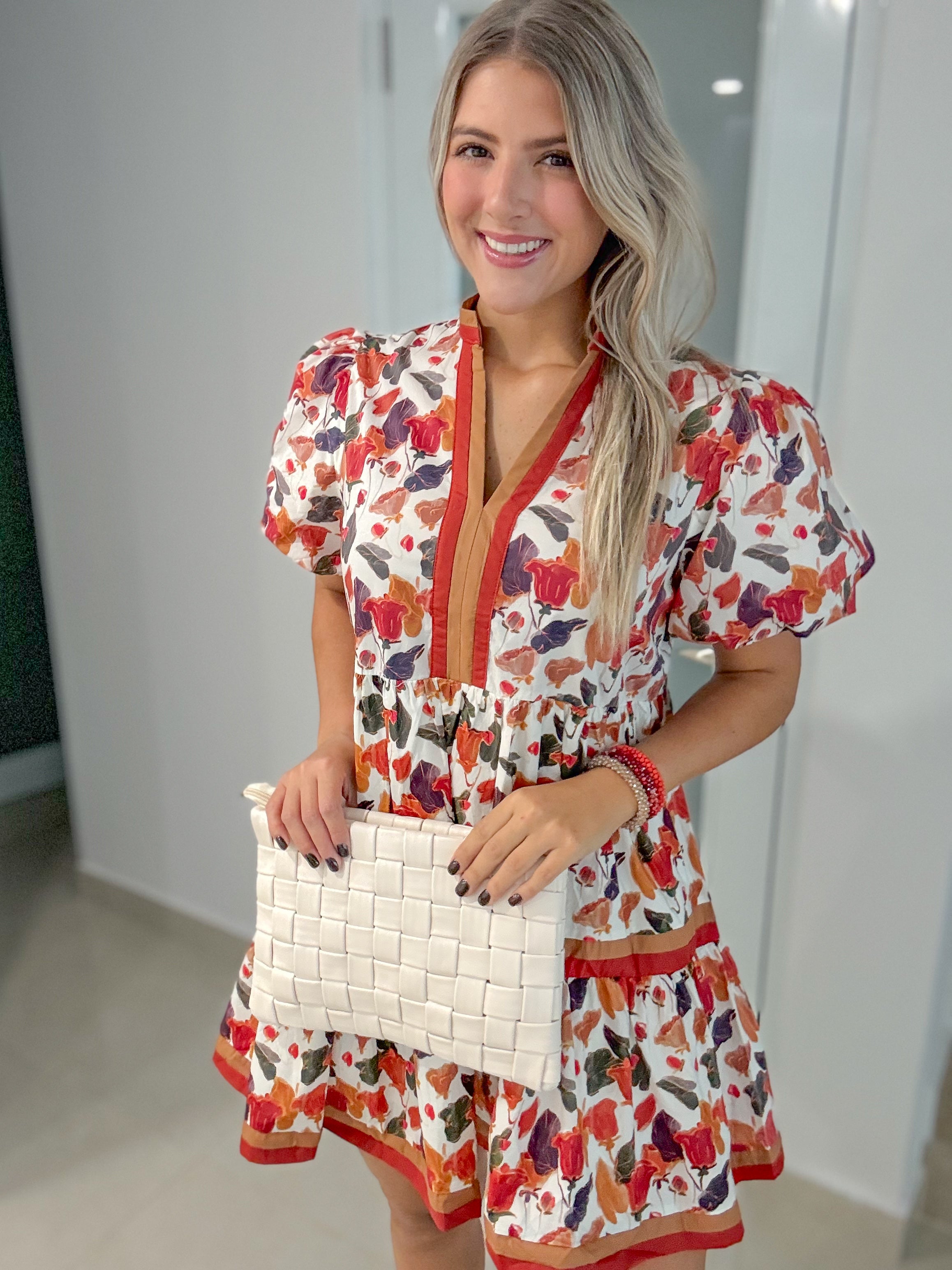 FALL COLORS PRINTED SHORT SLEEVES DRESS