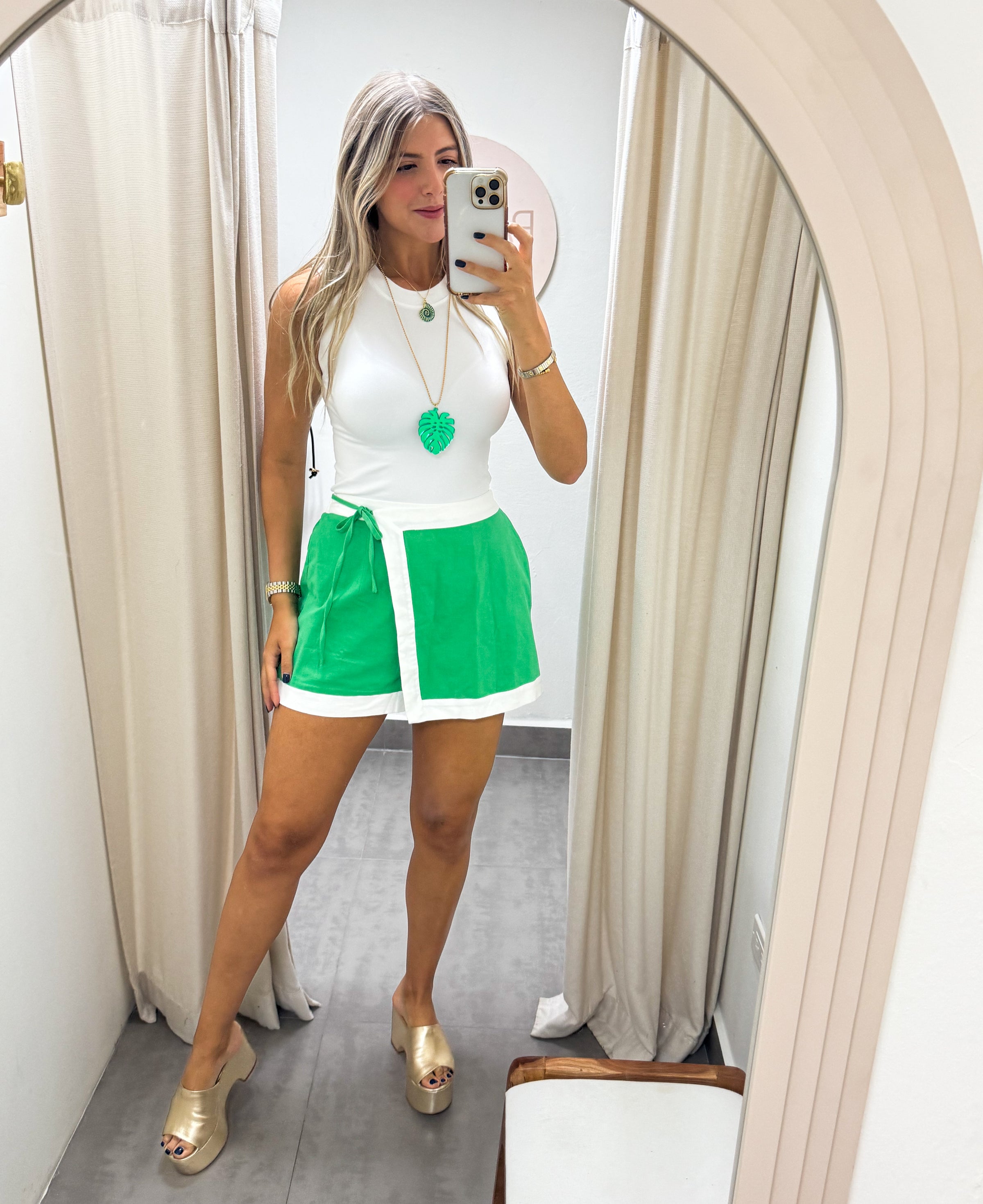 GREEN STRETCHY SKORT