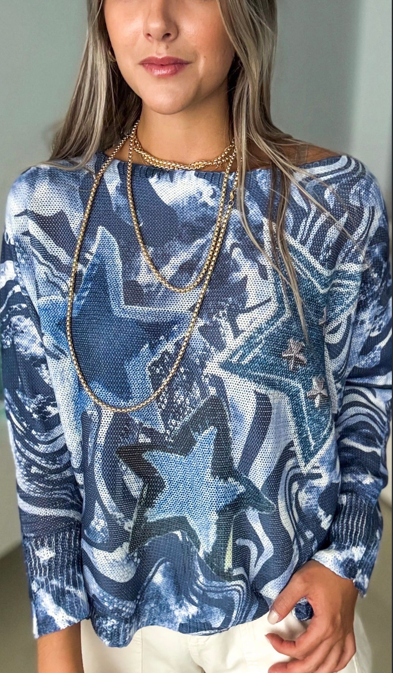 NAVY BLUE STARS KNITTED TOP
