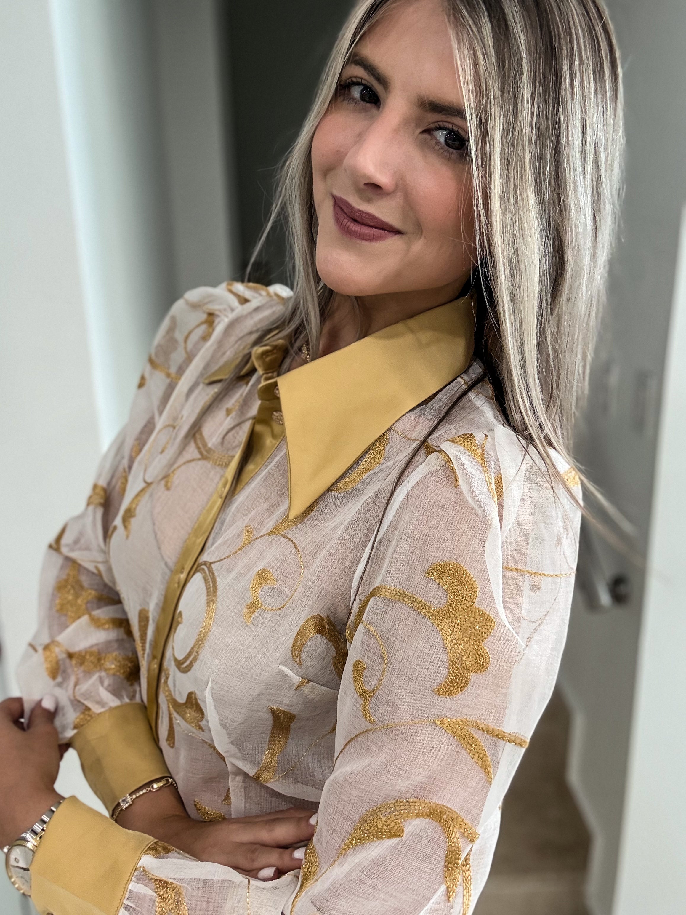 GOLD ORGANZA TOP & SATIN PANT SET