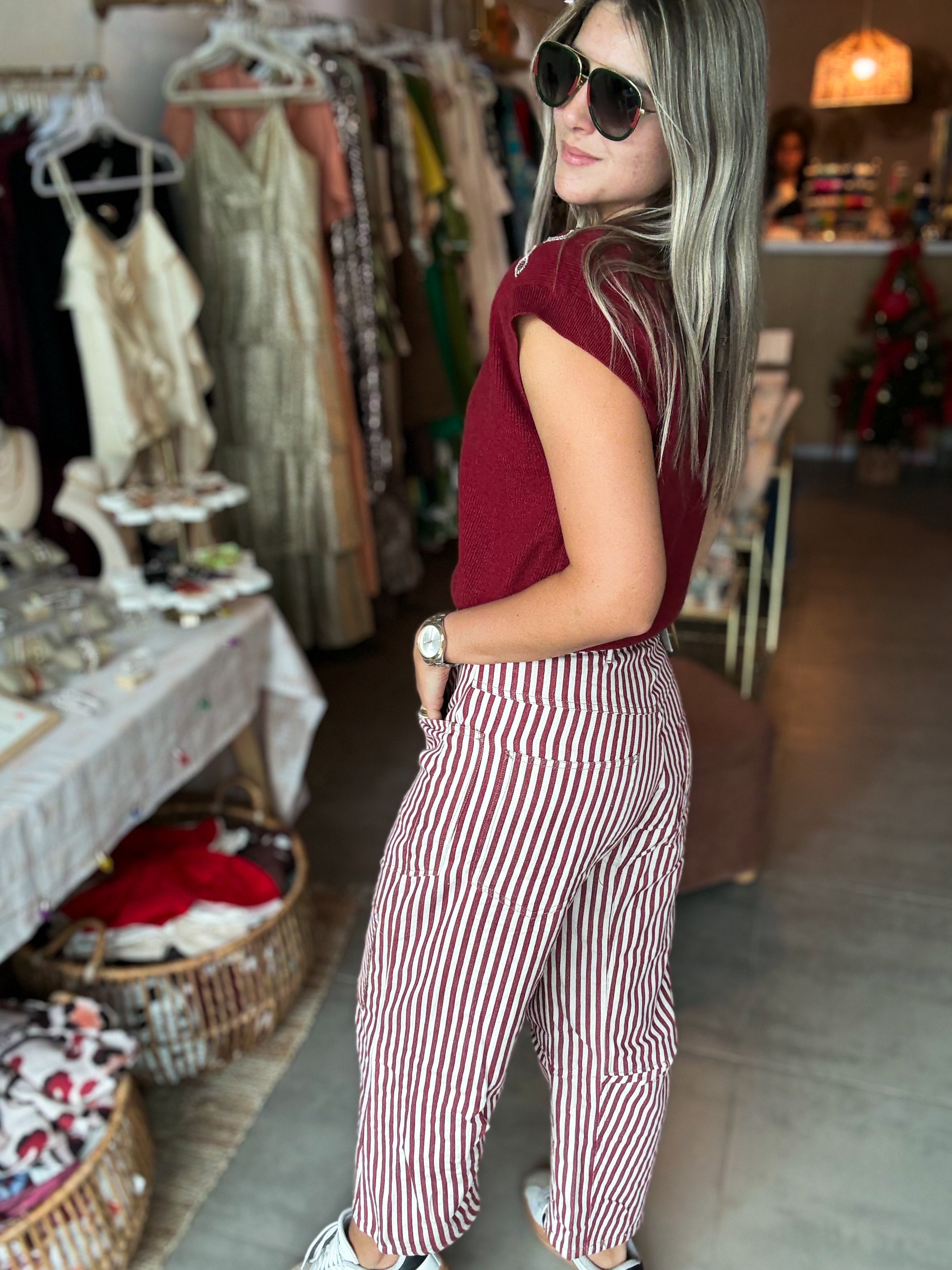 WINE RIBBON SEQUIN SHORT SLEEVES SWEATER TOP