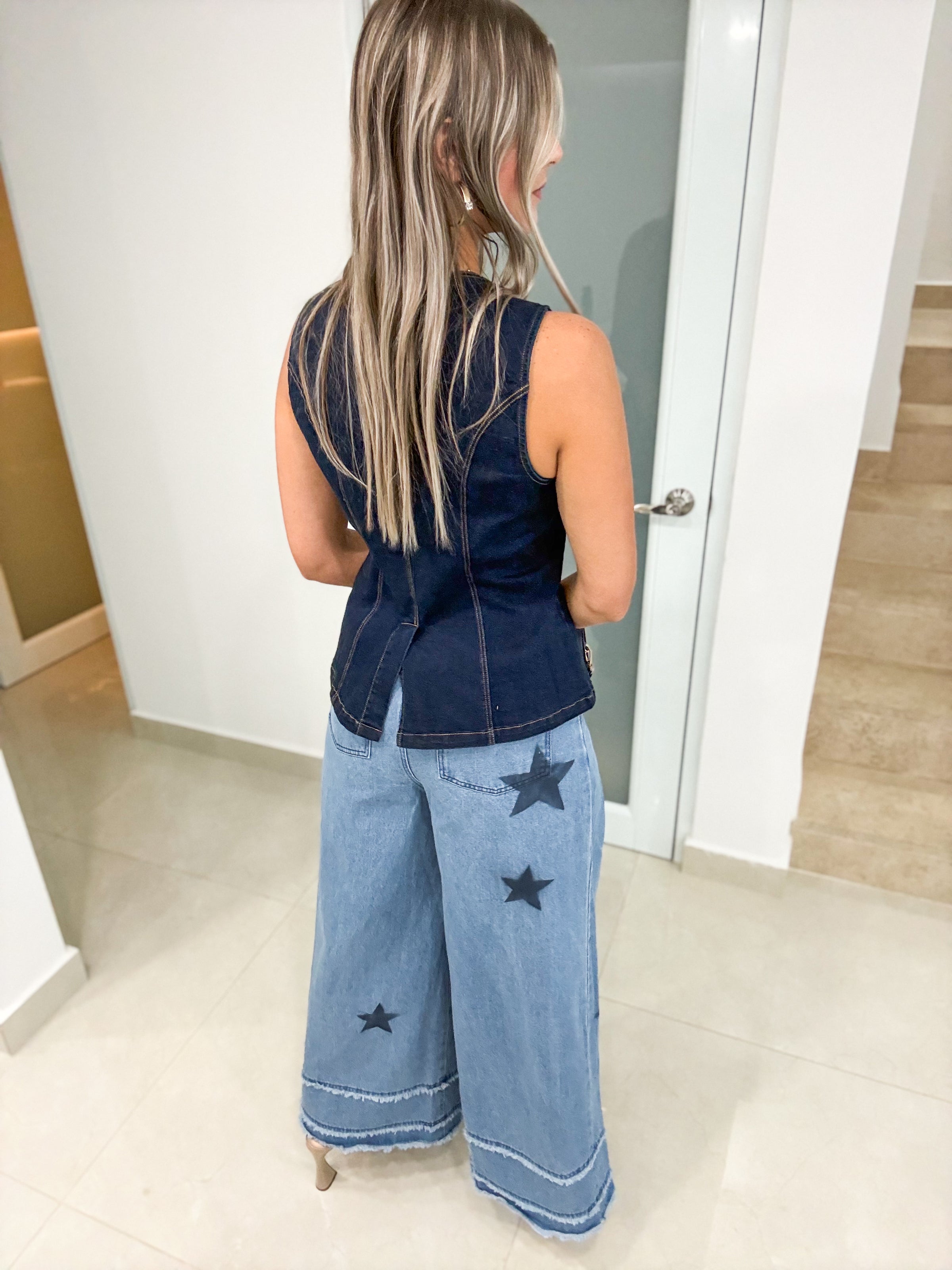 DARK DENIM STRETCHY VEST TOP