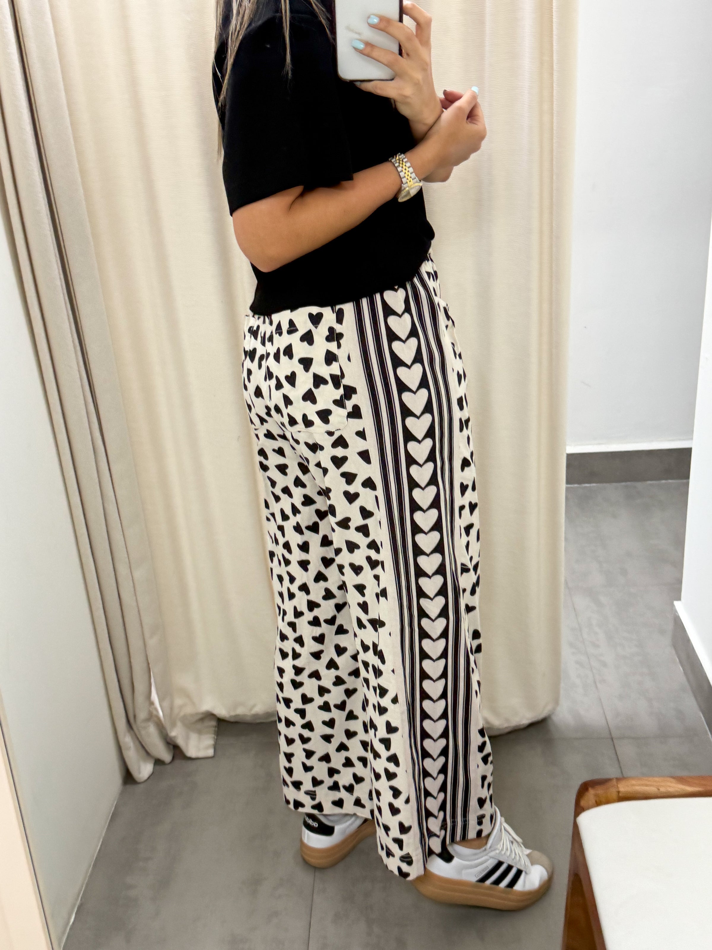 BLACK HEART PRINTED WIDE LEG PANTS